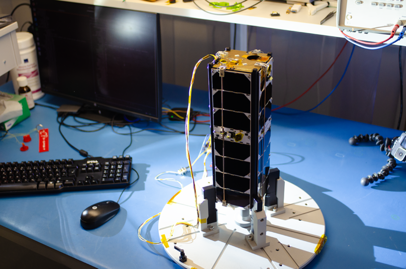Foresail-1p-satelliittia ympäröivät aurinkopaneelit. Kuva: Aalto-yliopisto / Daniel Guzman Monet.