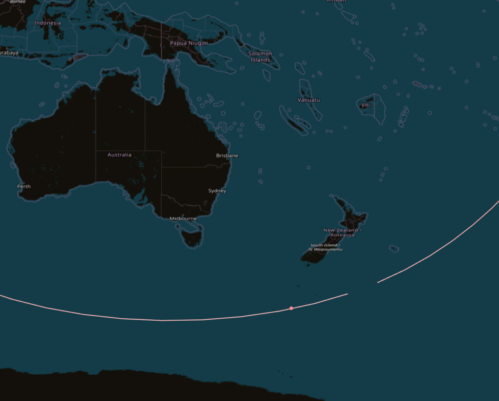 EU SST:n ennuste lopulliselle putoamisalueelle ei eroa kovinkaan paljon Space-Trackin vastaavasta. EU SST:n ennuste sijoittaa paikaksi merialueen Uuden-Seelannin lounaispuolelle.